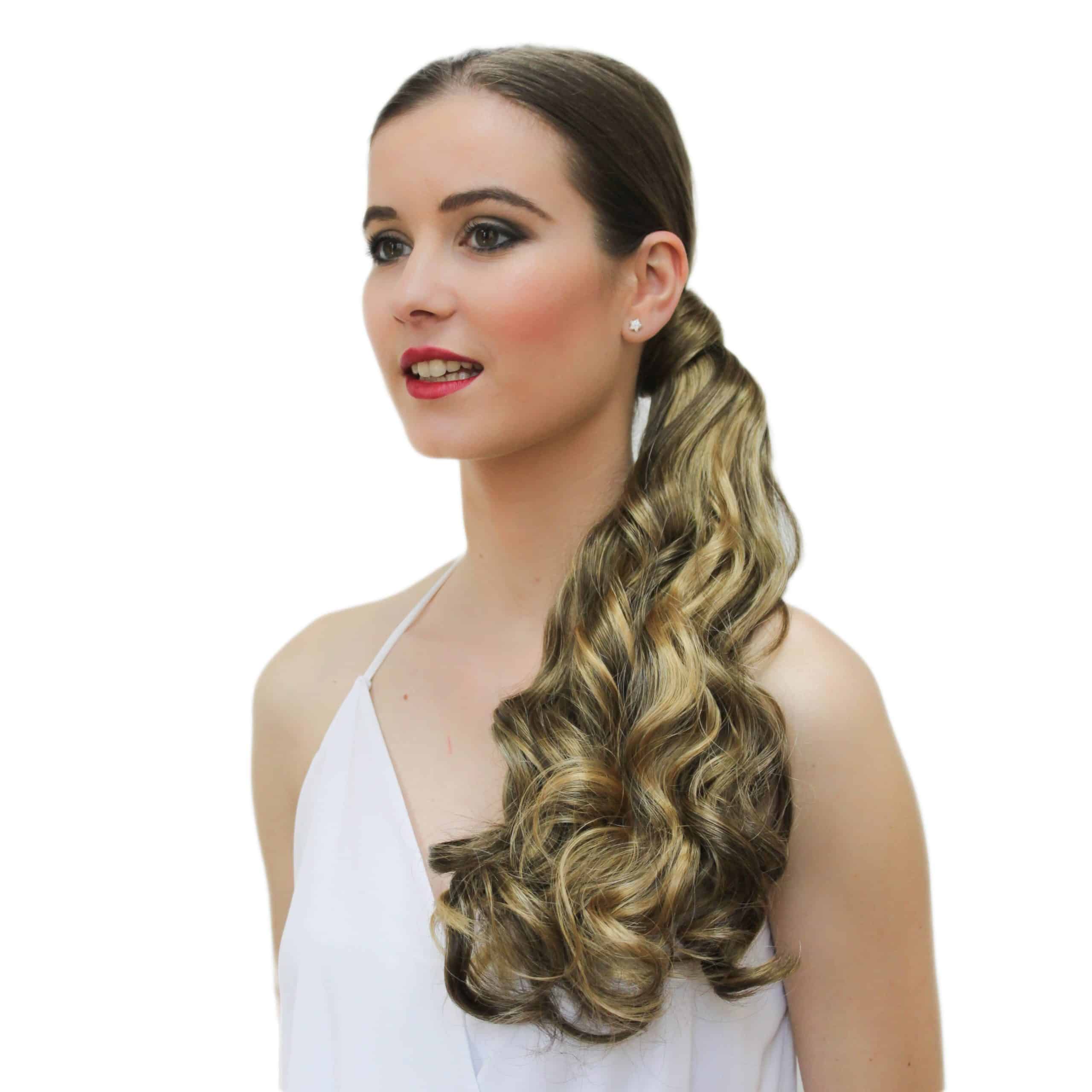 Postizo de fibra kanekalon. Fácil de poner y quitar. Lleva una pinza extraíble que permite creatividad para realizar todo tipo de recogidos.